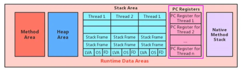 JVM中的程序计数寄存器(Program Counter Register)中,Register的命名源于CPU的寄存器,寄存器存储指令相关的现场信息。CPU只有把数据装载到寄存器才能够运行。这里,并非是广义上所指的物理寄存器,或许将其翻译为PC计数器(或指令计数器)会更加贴切(也称为程序钩子,把下一行执行的代码钩出来让执行引擎运行),并且也不容易引起一些不必要的误会。JVM中的PC寄存器是对物理PC寄存器的一种抽象模拟。