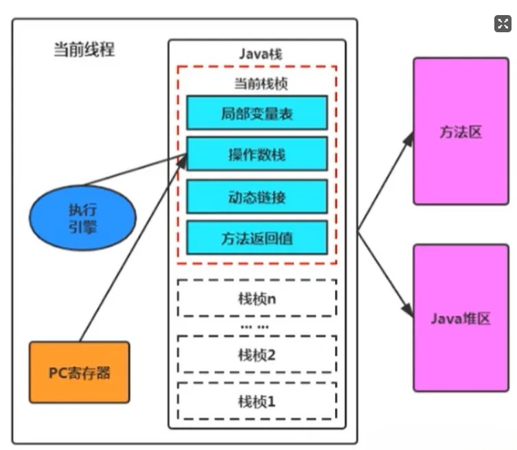 当我们通过前面的:类的加载-> 验证 -> 准备 -> 解析 -> 初始化 这几个阶段完成后,就会用到执行引擎对我们的类进行使用,同时执行引擎将会使用到我们运行时数据区