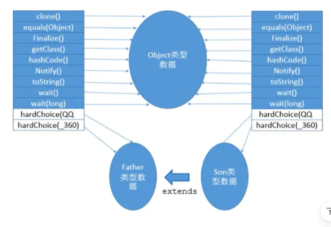 找到son类发现toString()是Object类的,就不用再往父类father找了直接用Object的。