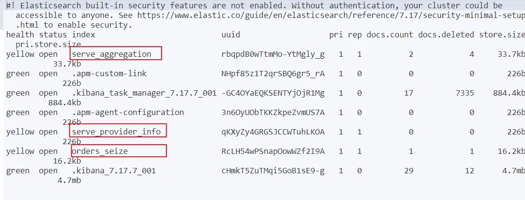 执行:GET /_cat/indices?v 查询索引信息