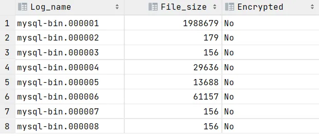 SHOW BINARY LOGS;