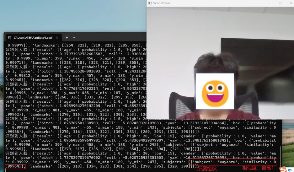• 系统会自动识别照片中的人脸,给出所属分类及相似度结果。
