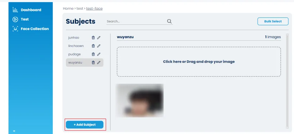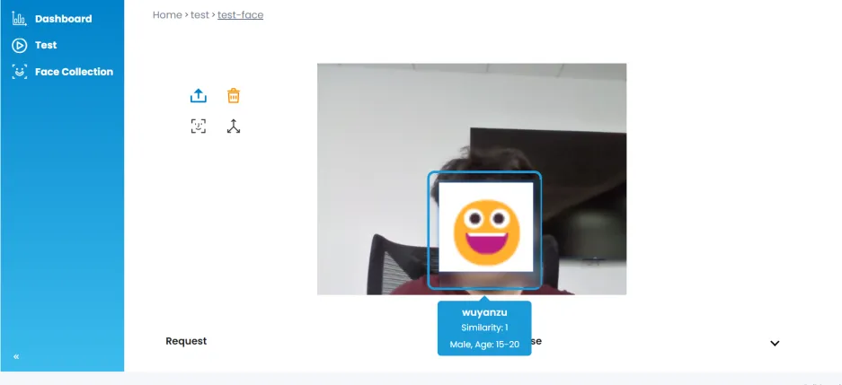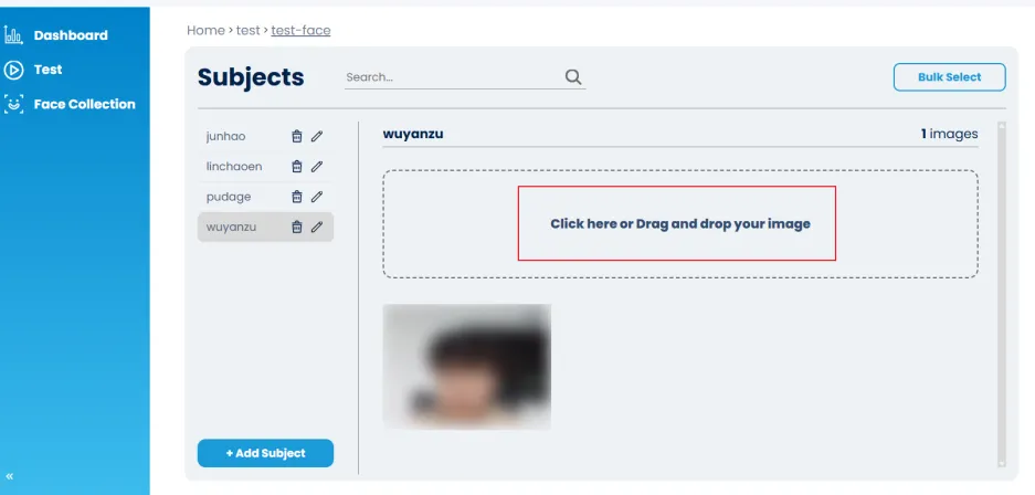 • 点击左侧菜单的 “Test”,上传一张测试图片。