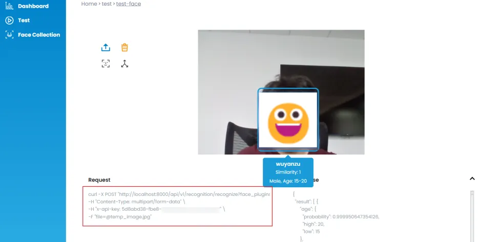 # 发送POST请求到CompreFace API进行人脸识别