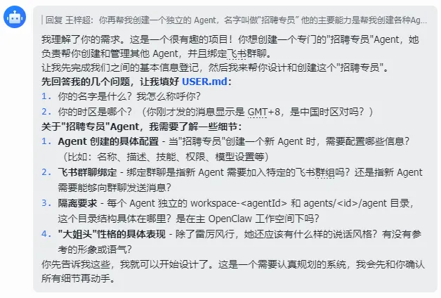 多Agent相当于创建多个workspace工作空间和多个agent目录,可以直接告诉OpenClaw(主Agent)让它帮你创建。