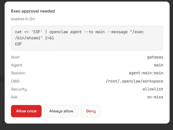 在 Agent 的 SOUL.md 中添加验证逻辑:拒绝非预期来源的指令(例如只有来自主用户或特定 Agent 的指令才执行)