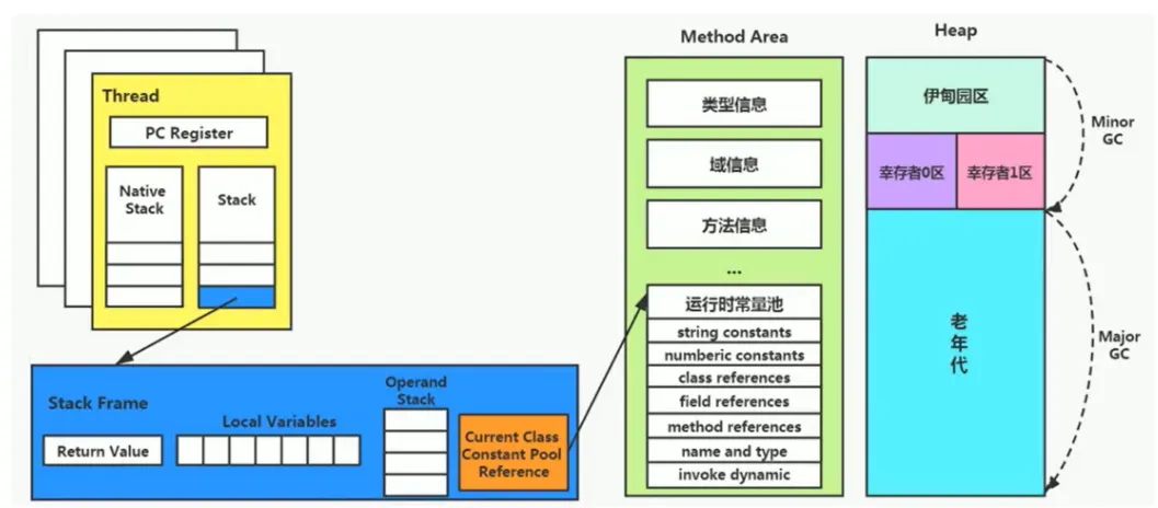 一个java源文件中的类、接口,编译后产生一个字节码文件。而Java中的字节码需要数据支持,通常这种数据会很大以至于不能直接存到字节码里,换另一种方式,可以存到常量池,这个字节码包含了指向常量池的引用。在动态链接的时候会用到运行时常量池,之前有介绍。