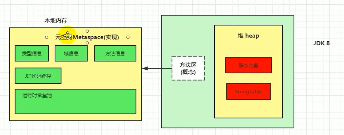 随着Java8的到来,HotSpot VM中再也见不到永久代了。但是这并不意味着类的元数据信息也消失了。这些数据被移到了一个与堆不相连的本地内存区域,这个区域叫做元空间(Metaspace)