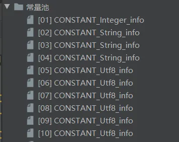 • JVM为每个已加载的类型(类或接口)都维护一个常量池。池中的数据项像数组项一样,是通过索引访问的。
