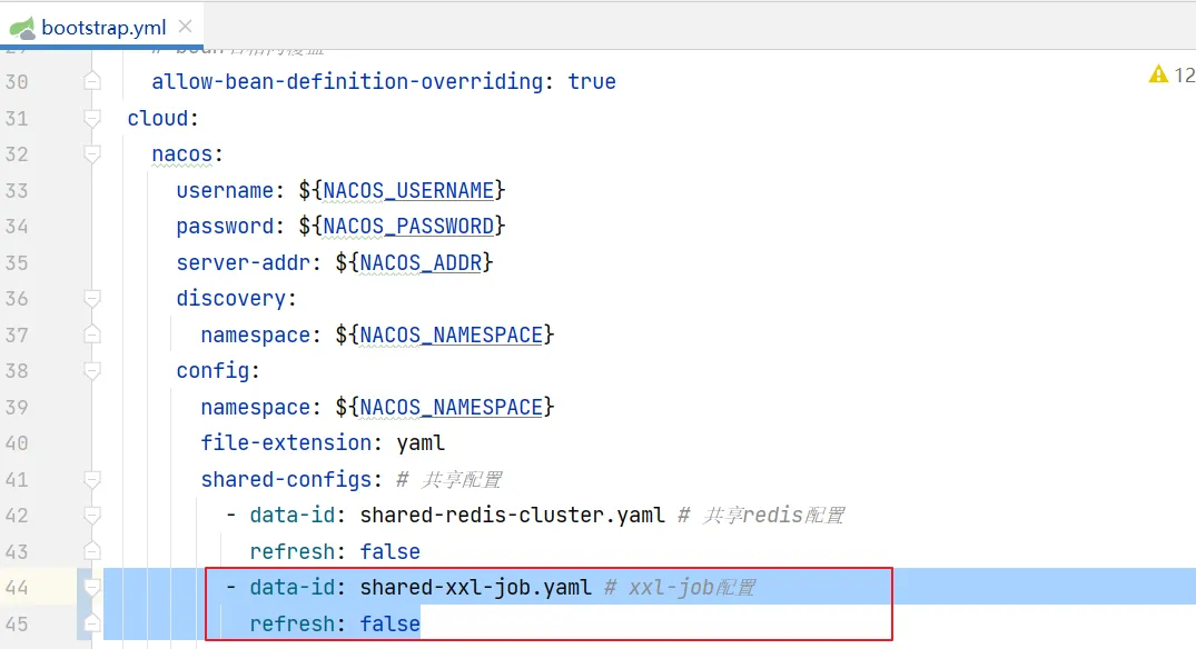 接下来进入nacos,配置shared-xxl-job.yaml: